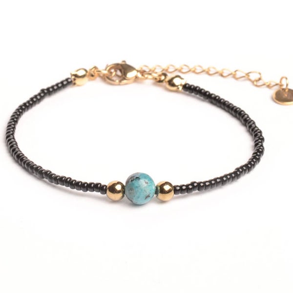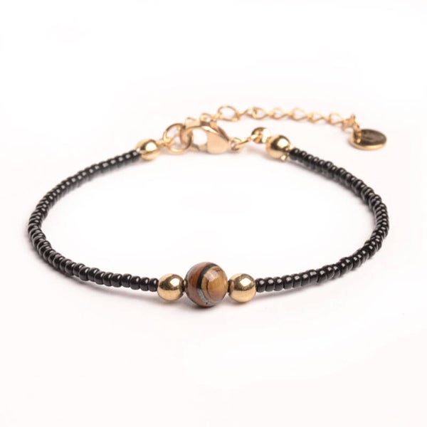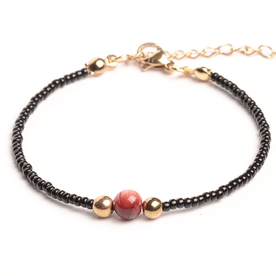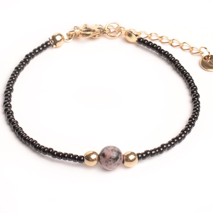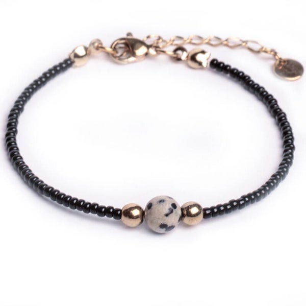Armbandje gemaakt van japanse Miuyuki glaskraaltjes, hematite en een natuursteen kraal.