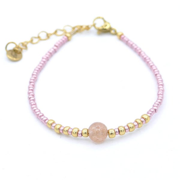 Armbandje gemaakt va Miyuki 2 en 4 mm glaskraaltjes met een 6 mm natuursteen.