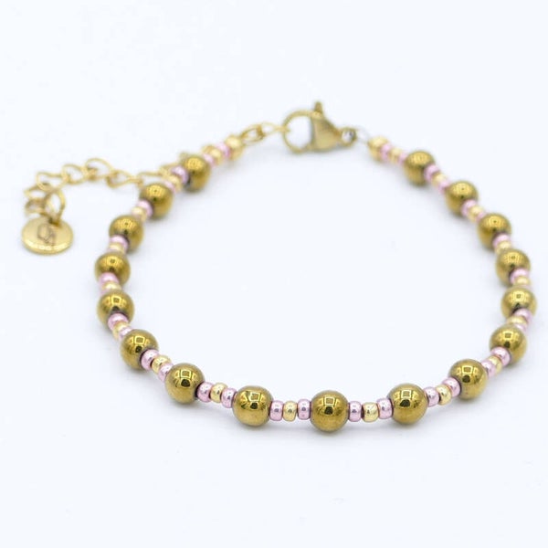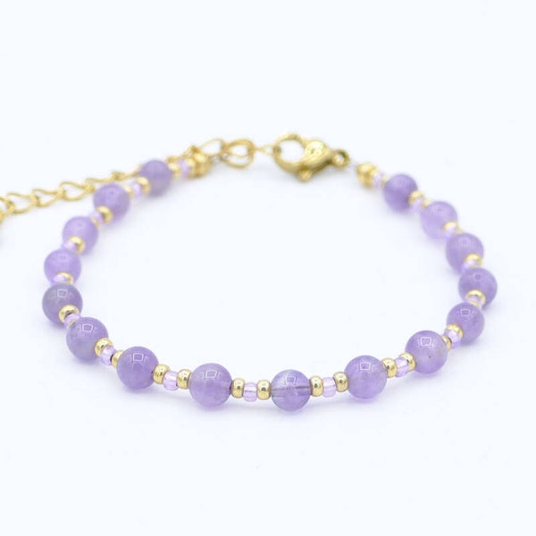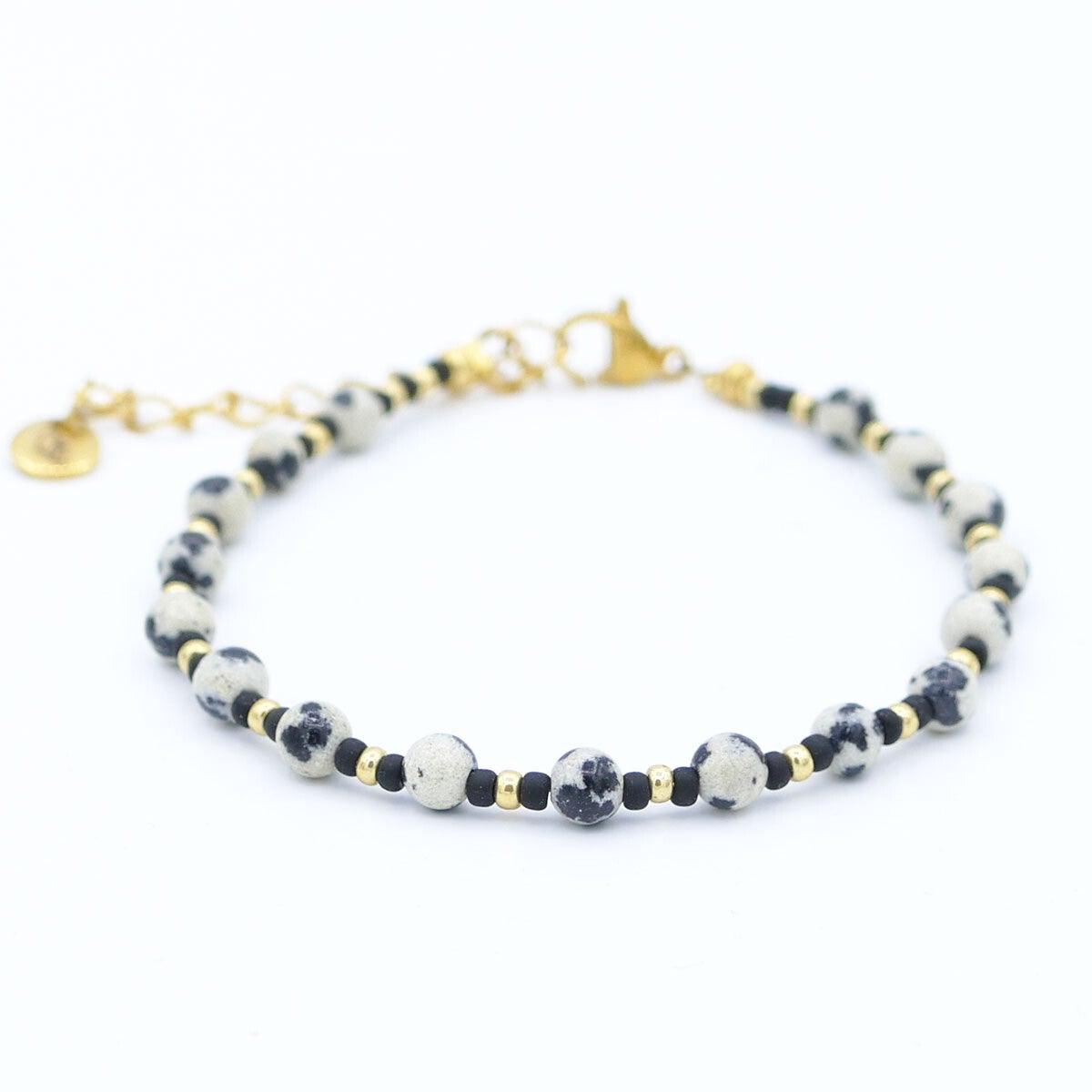Armbandje gemaaakt van 4 mm natuursteen kralen in combinatie met 2 mm Miyuki glaskraaltjes.