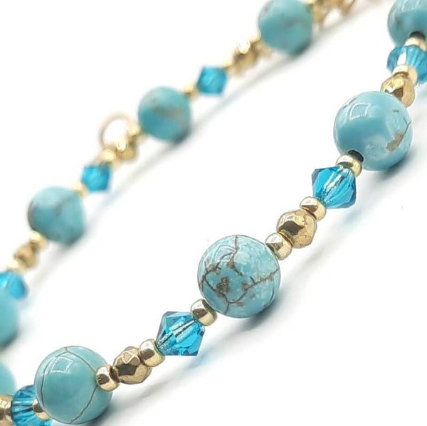 Het armbandje is gemaakt met 6 mm natuursteen kralen, Precosia glaskralen, hematite en japanse Miyuki glaskralen.