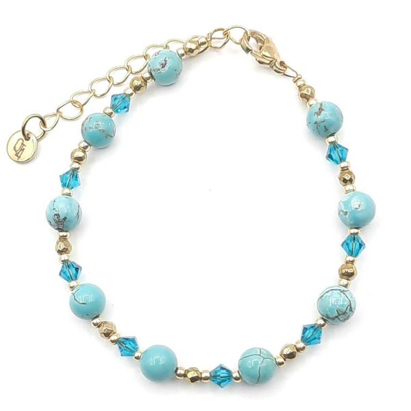 De sluiting is afgewerkt met RVS elementen. Door het verlengkettinkje past de armband om een pols van 15 - 20 cm.