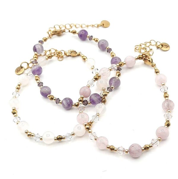 Het armbandje is gemaakt met 6 mm natuursteen kralen, Precosia glaskralen, hematite en japanse Miyuki glaskralen.