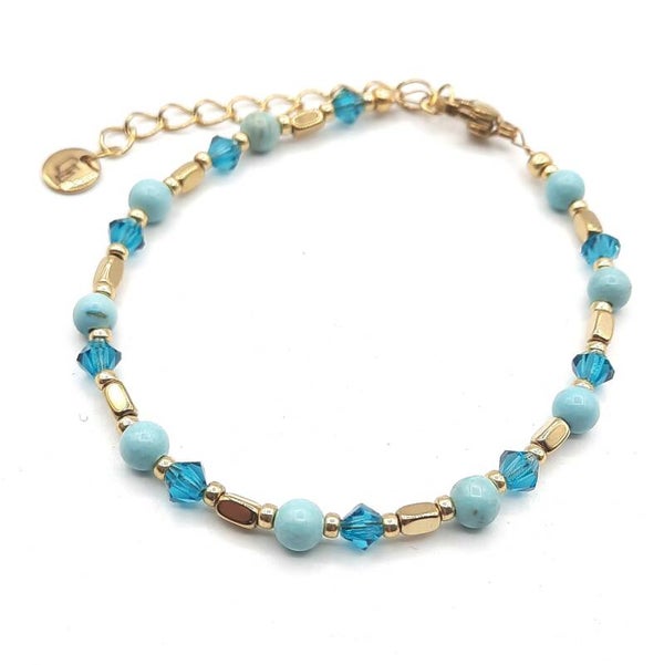 Het armbandje is gemaakt met 4 mm natuursteen kralen, Precosia glaskralen, hematite en japanse Miyuki glaskralen.