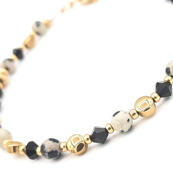 Dit stijlvolle armbandje is gemaakt met 4 mm natuursteen kralen, Precosia bicone kralen en Miyuki glaskraaltjes.
